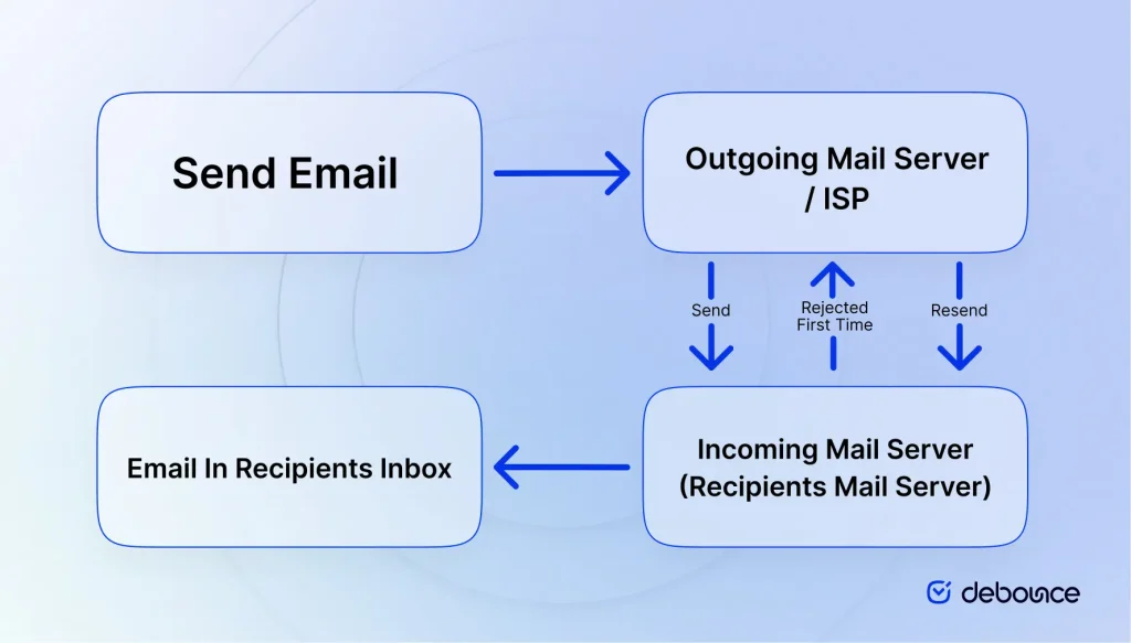 It is a new popular spam-fighting feature, similar to whitelisting and blacklisting. Each time a mailbox receives an email from an unknown contact (IP), that mail is rejected with a “try again later” message. This means that all mail gets delayed at least until the sender tries again. This is where spam messages fail because they are not RFC-compliant and will not be resent later.