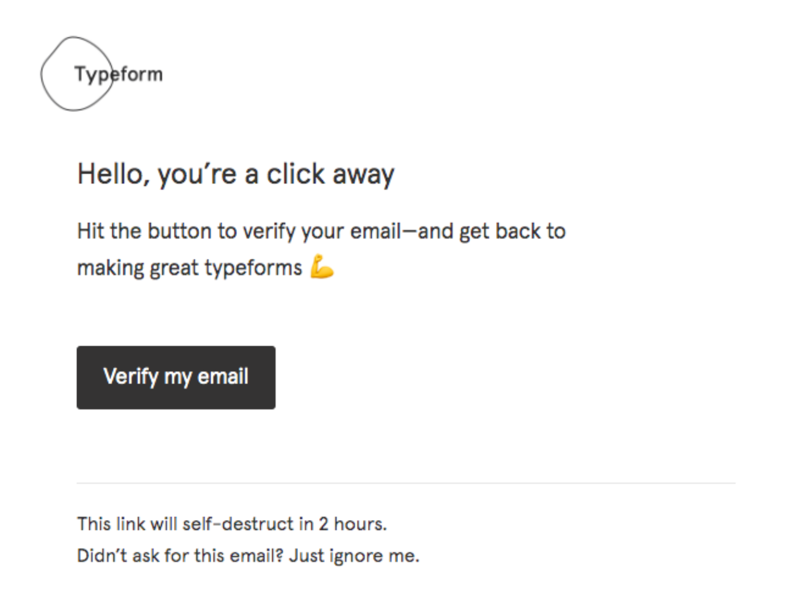 This is a beautiful example of a thank you email that serves as a double opt-in. It’s fun and engaging without distracting users from the actual reason behind it.