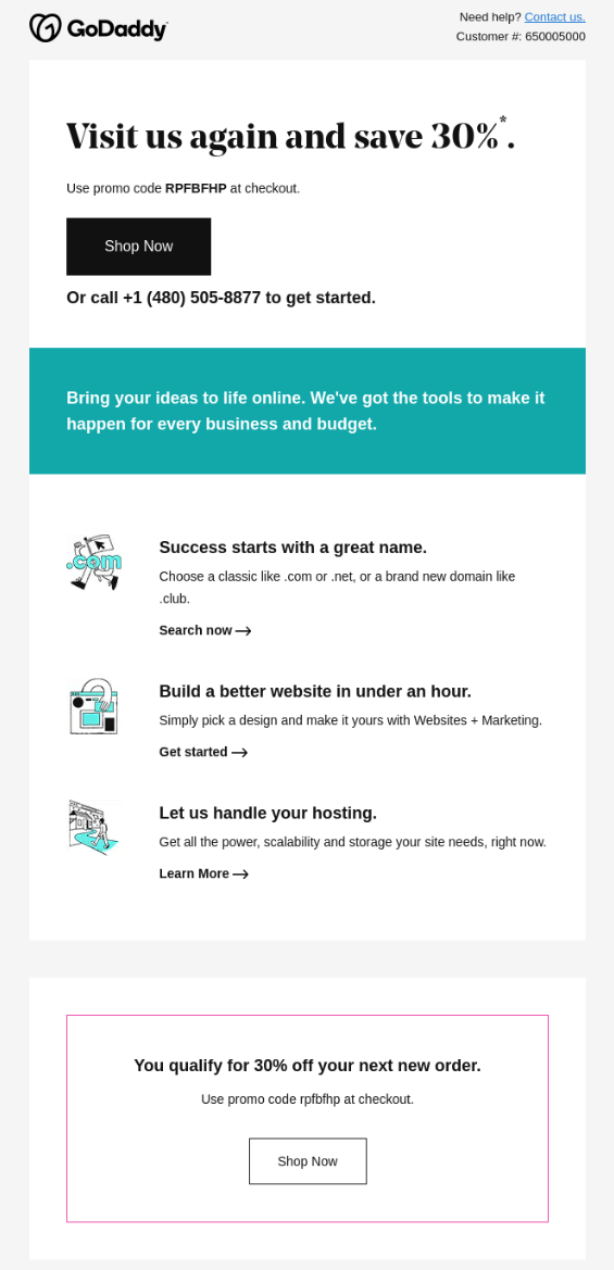 “Visit us again” and showing an incentive is a fantastic way to entice the email recipient and make them think of returning and using your product again. Think of it as a PR tool: it allows users to re-engage with your brand and reminds them that you’re there. All the while, you’re giving a small token of appreciation and will get more revenue back.