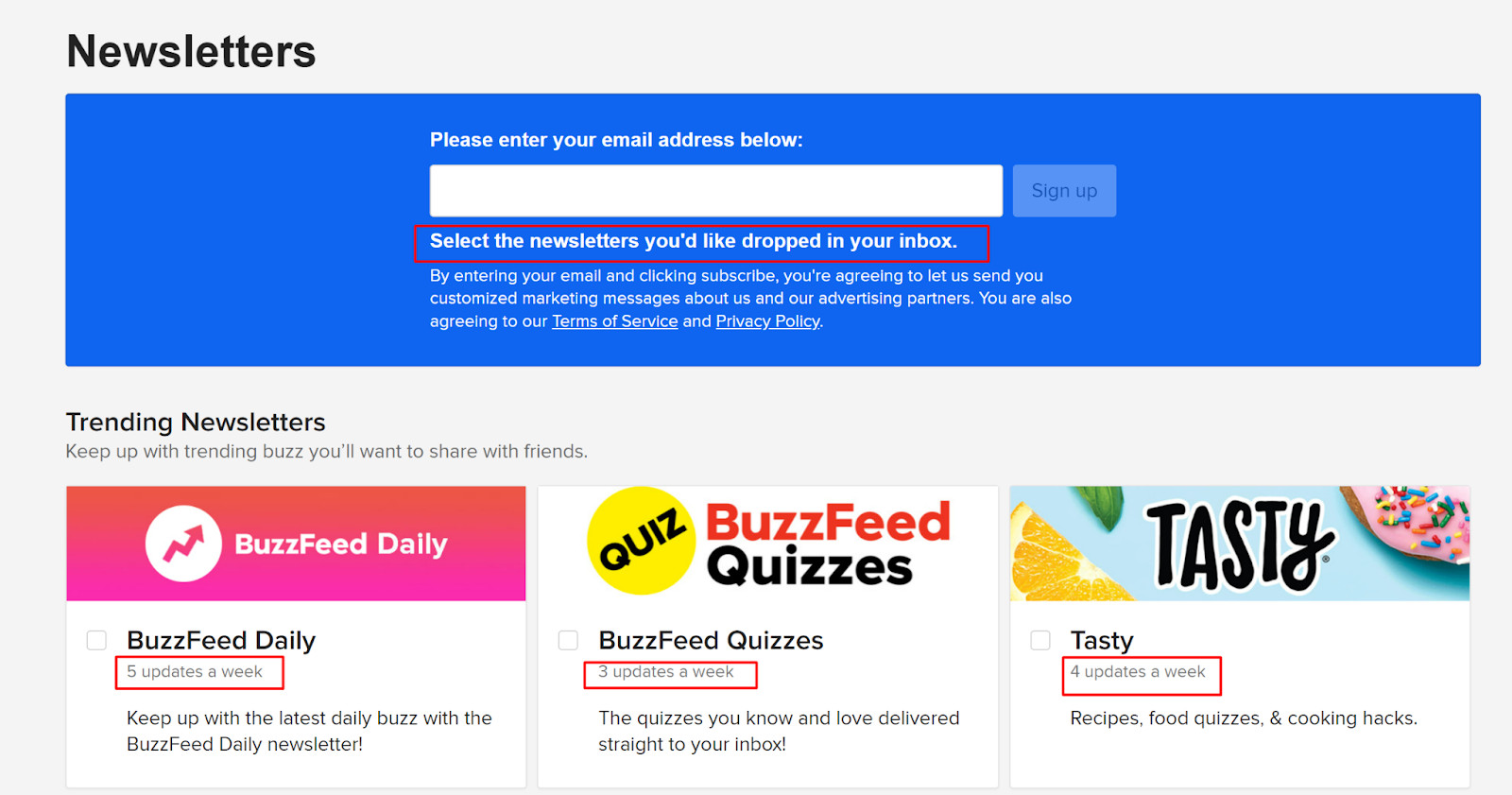 You can also make your emails into a series. Allow your users to pick and choose when they’d like to get updates from you – that way, you’ll train them to expect your marketing messages. Like so: