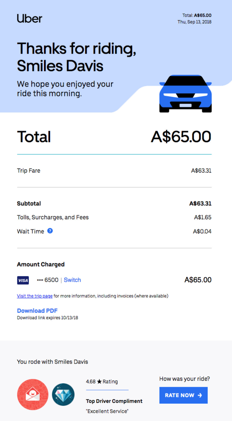 It’s what usually comes after the order’s confirmation. A transactional email is, again, not the place to demonstrate all of your creativity, as its role is simple.