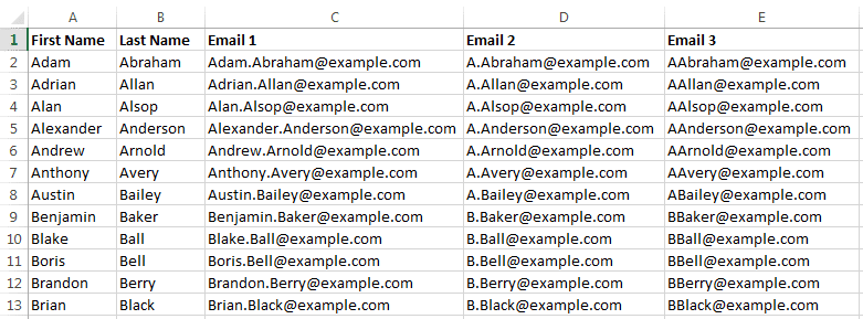 This emails are just like the output of the step 1.2. All you need is to follow previous section guidelines and use bellow formula to create email addresses: