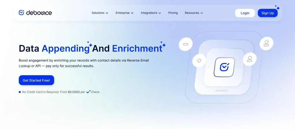 DeBounce is ideal for small businesses that want to enrich their data without breaking the bank. Their data enrichment service costs start at $10 for every 5,000 verifications.