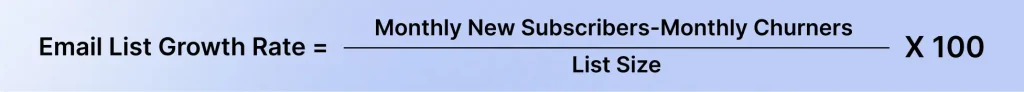 The email list growth rate measures how much your email list is growing. More specifically, it measures how much of your email list is growing as opposed to churning (or reducing).