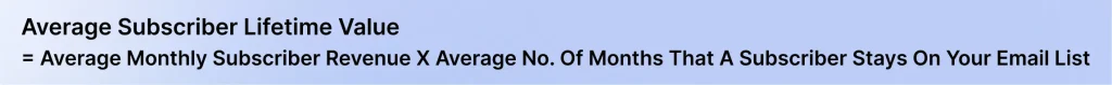 The subscriber lifetime value measures the value that an individual subscriber brings with them throughout their lifetime on your list. The value that a subscriber brings is dependent on the revenue that they generate for you, which is another metric altogether known as revenue per subscriber.