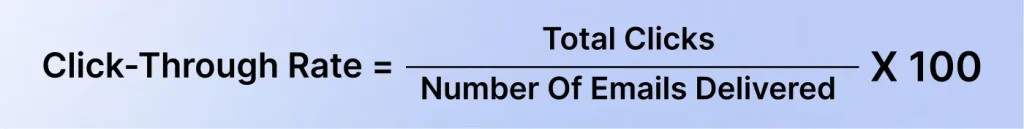The click-through rate indicates the percentage of your target audience that clicked at least one link in your email. It considers all the delivered emails, regardless of whether they were opened or not.