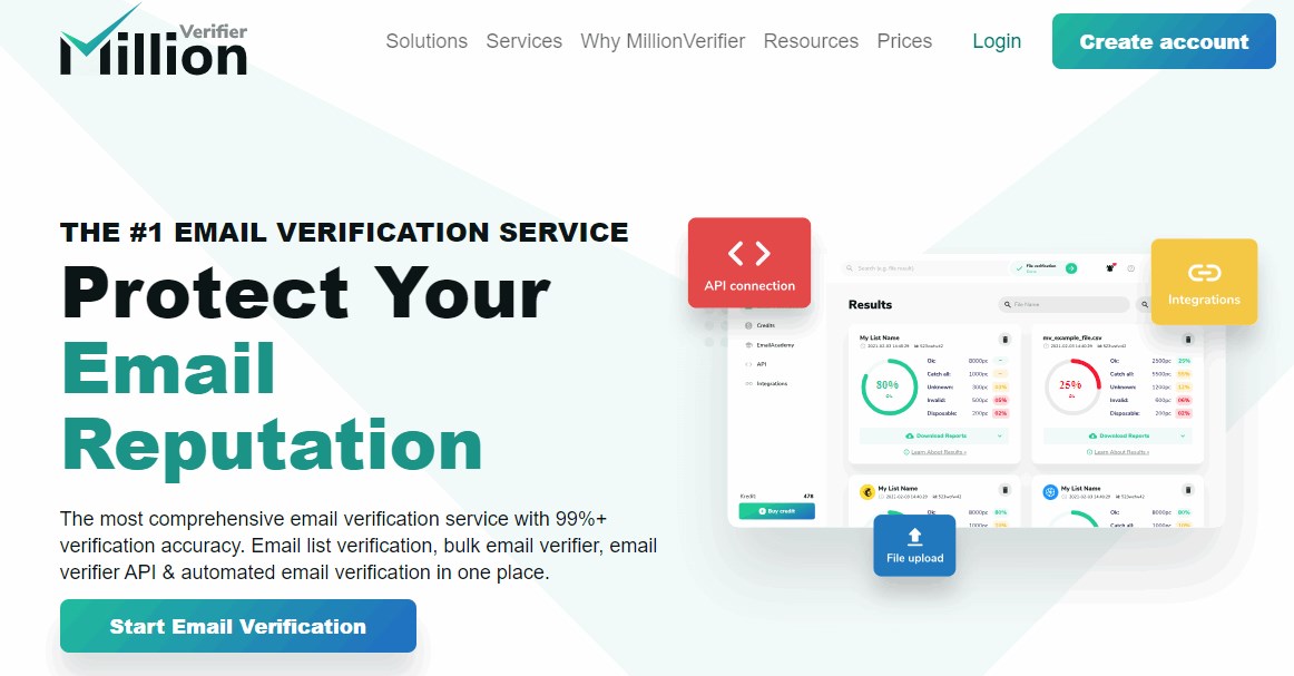 MillionVerifier is a cost-effective and versatile service. However, it lacks features like blocklist monitoring and catch-all detection.