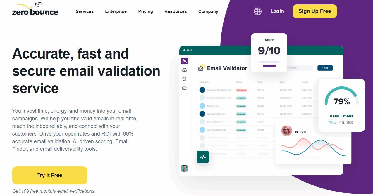 ZeroBounce is one of the most popular and reliable email verification tools out there. It offers the tools and features to keep your email lists clean and relevant.