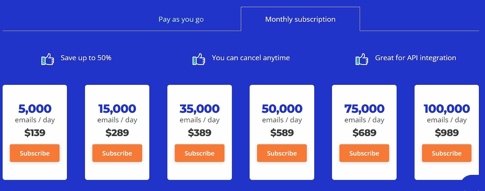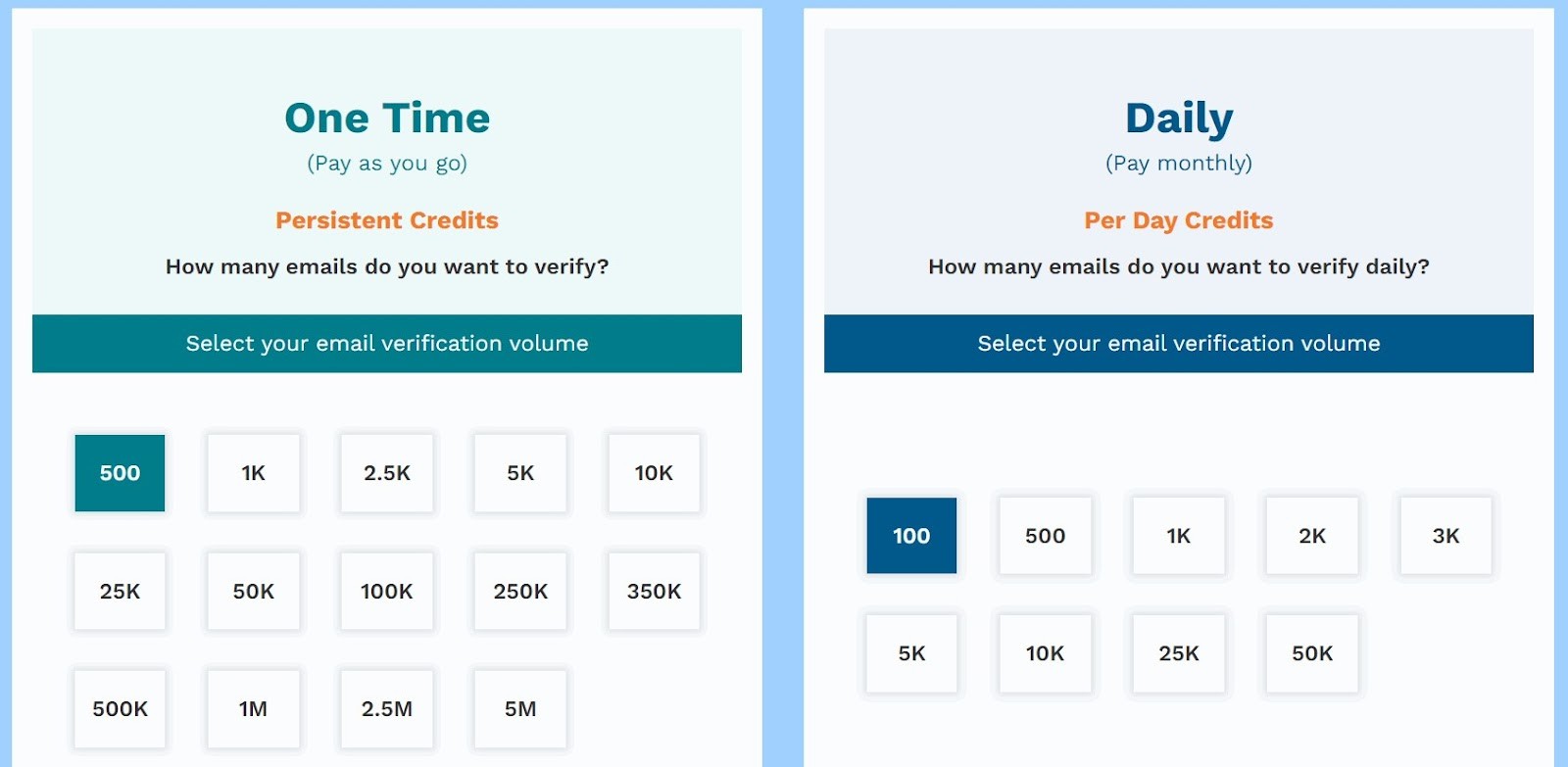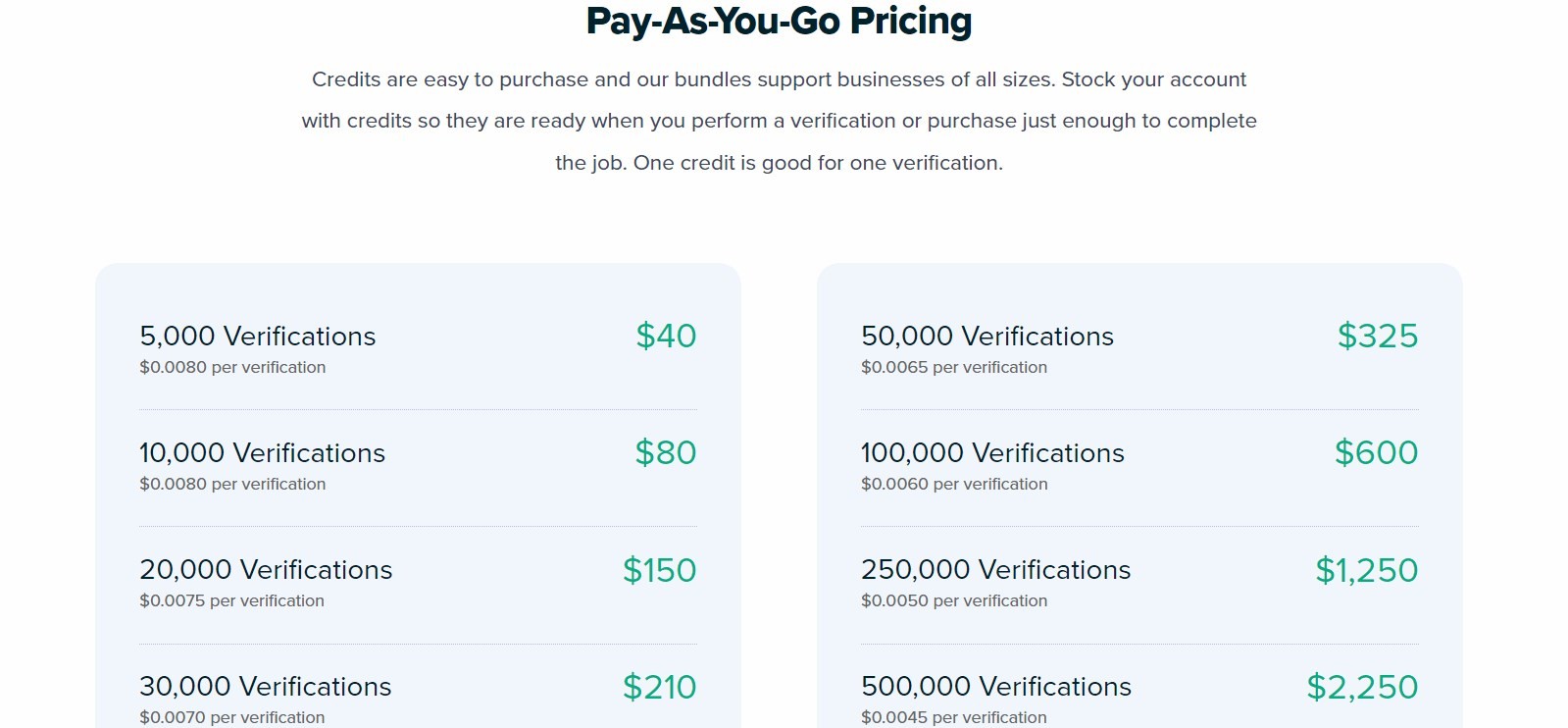 The credit-based pricing starts from $29 per 5000 emails, which can be a bit high for startups and solopreneurs. The monthly plan is suitable for businesses with more regular email verification, especially because you can save $14 on it.