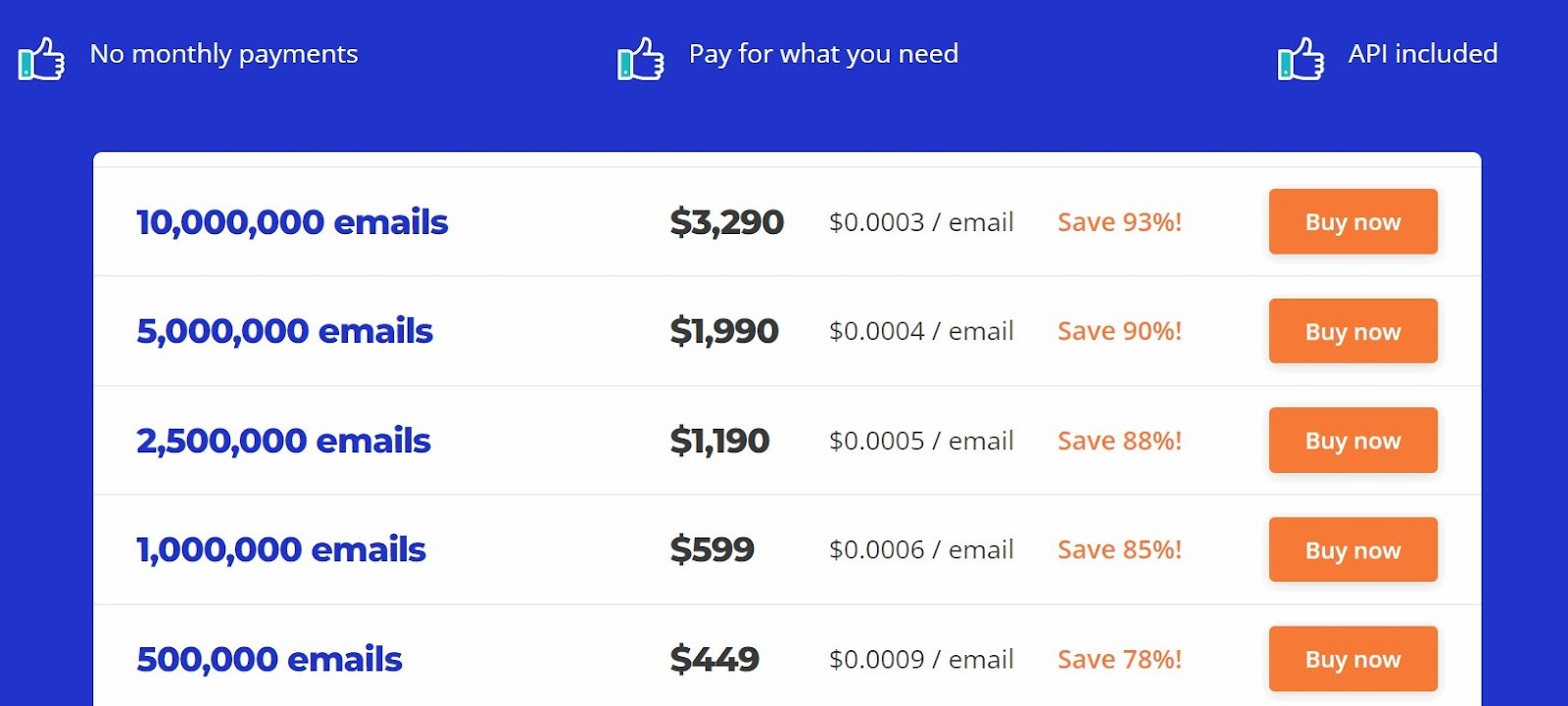 Tools like DeBounce have a flexible credit-based pricing option. This means you don’t have to pay for a subscription when you’re not using the service.