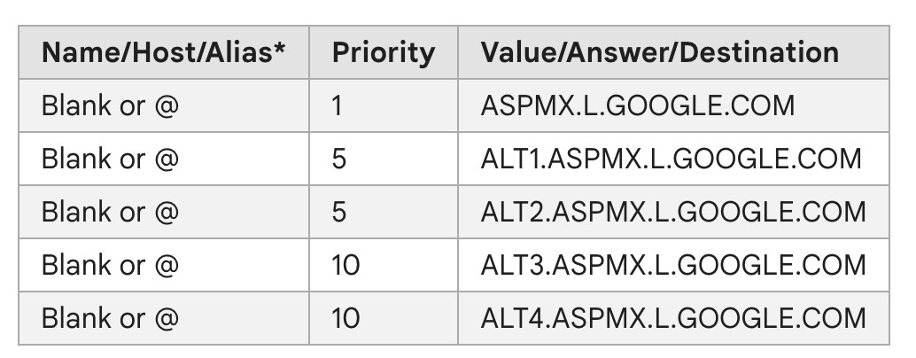 Host: @ Value: v=spf1 include:_spf.google.com ~all TTL: Default value