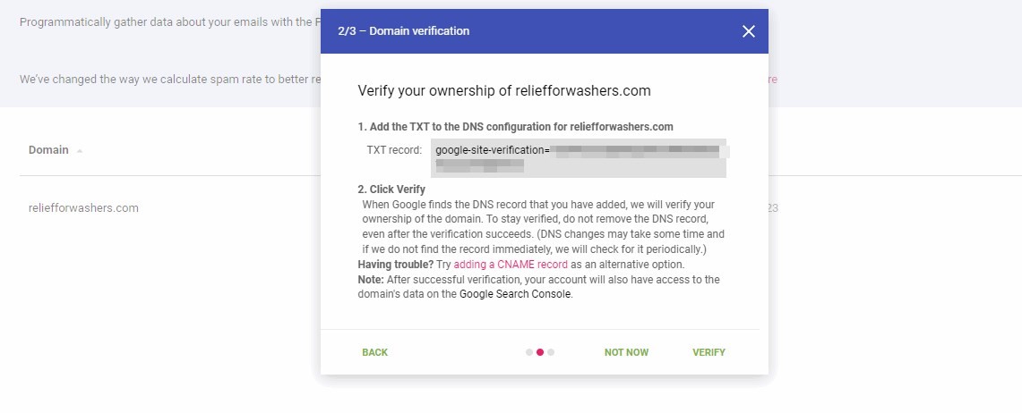 Step 4: Once you’ve updated your domain’s TXT or CNAME record, click “Verify”.