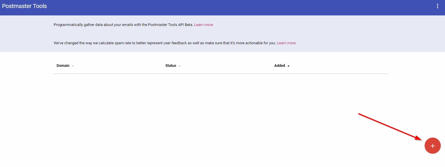 Step 1: Start by going to the official Google Postmaster Tools website. Look for the “+” icon at the bottom left of the page.
