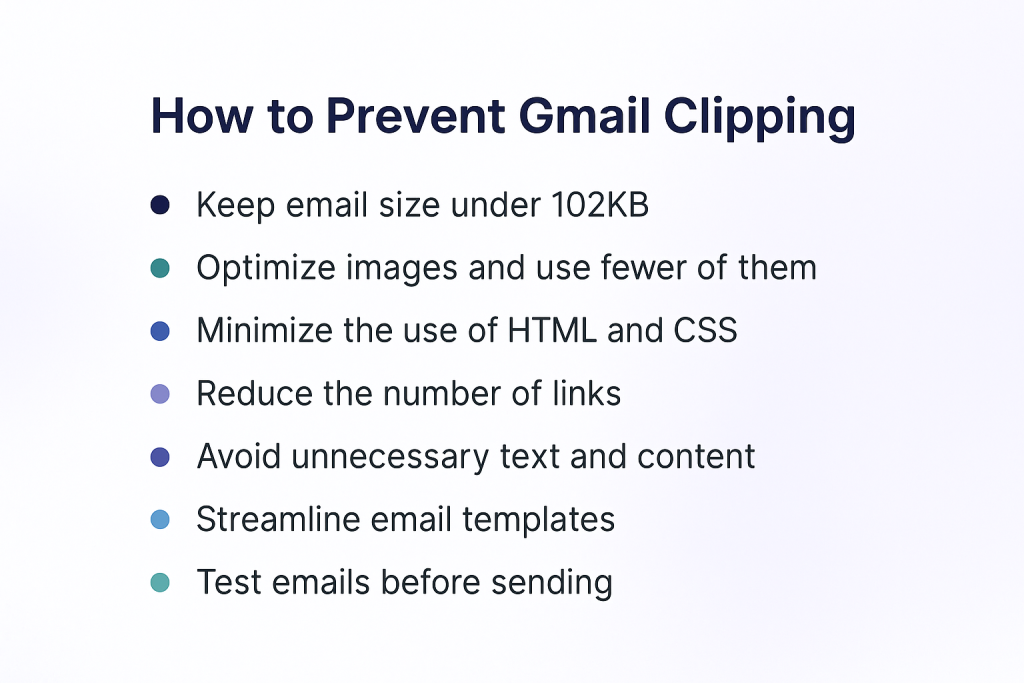 Although Gmail clips at approximately 102 KB, targeting 80 KB provides a safe buffer for last-minute changes, tracking pixels, and personalization.