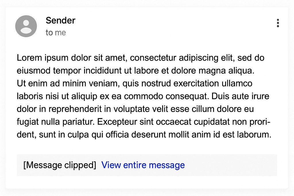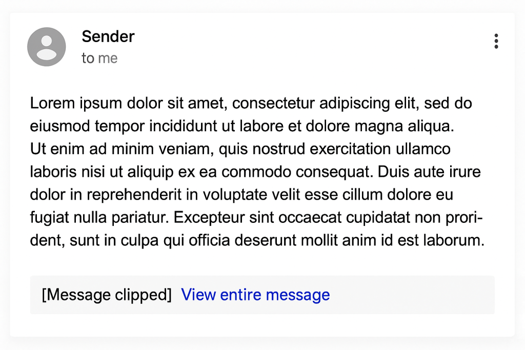 First, clipping improves load speed. Gmail handles billions of emails every day across many device types. Long blocks of HTML require more rendering time and can slow down the inbox experience. By limiting the amount of automatically displayed HTML, Gmail keeps emails loading quickly and efficiently.