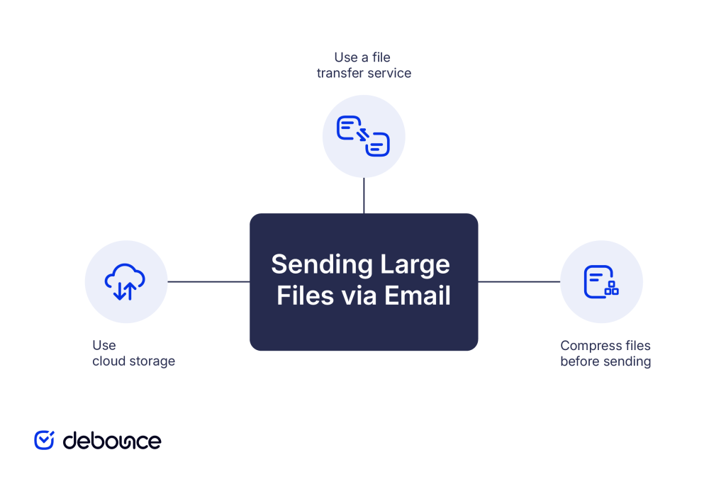 Instead of attaching large files directly, use one of three proven methods that keep files accessible without triggering size restrictions or delivery problems.