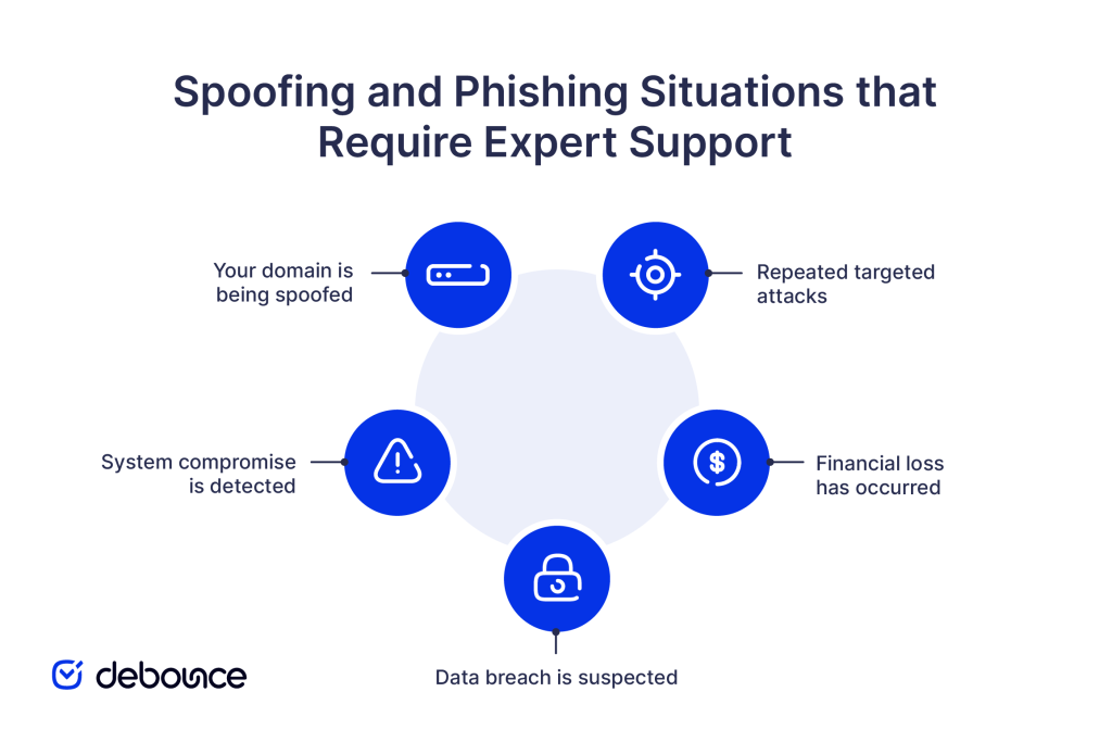 Some spoofing and phishing situations require expert support beyond internal capabilities. Seek professional help when: