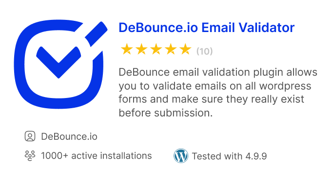 The DeBounce WordPress Plugin helps you to build a reputable list that is free of spam and invalid emails, prevent email-entry mistakes to increase open rates, save on your marketing budget and protect your sender reputation. It’s time to take charge of your list! This plugin works perfectly in WP registration forms and integrates with most form builders.